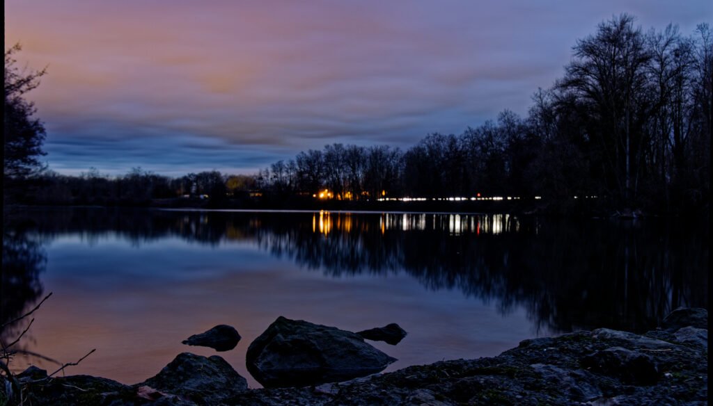 Quand le crépuscule s’étend et que la surface du lac reflète les dernières lueurs du jour, un calme envoûtant s’installe. Une invitation à se perdre dans la magie de la lumière et des ombres.